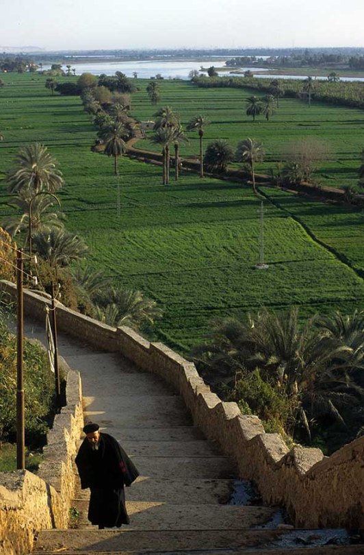 Priest of Gabal al-Tayr March 27, 2017 591 × 900 Searching the Route: On the History and Present of the Holy Family Tradition Photo: Norbert Schiller, a priest walks up the stairs leading to Gabal al-Tayr from the Nile Valley