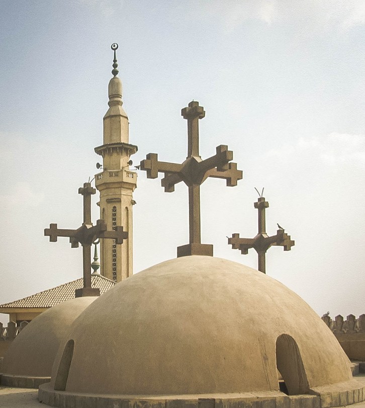 dscn0680 March 5, 2017 1075 × 1200 Musturud Photo: Paul Perry, a mosque’s minaret seen through the domes of the Church of the Holy Virgin at Musturud. It is common to have a mosque close to a church.