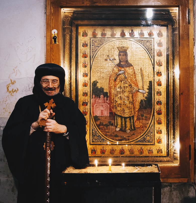 Metrpolitan Bishoy in front of the icon of St. Dimyana May 9, 2017 1868 × 1936 Dimyana ( Burullus) Photo: A.Krause-laif, Metrpolitan Bishoy in front of the icon of St. Dimyana.