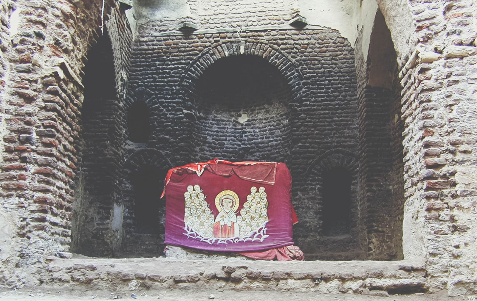 the sanctuary of the ninth century church at the Convent of St. Dimyana April 12, 2017 1600 × 1012 Dimyana ( Burullus) Photo: Paul Perry, the sanctuary of the ninth century church at the Convent of St. Dimyana. We can see the old altar covered with a cloth with St. Dimyana and the forty virgins who worshipped with her in this convent built by her father.