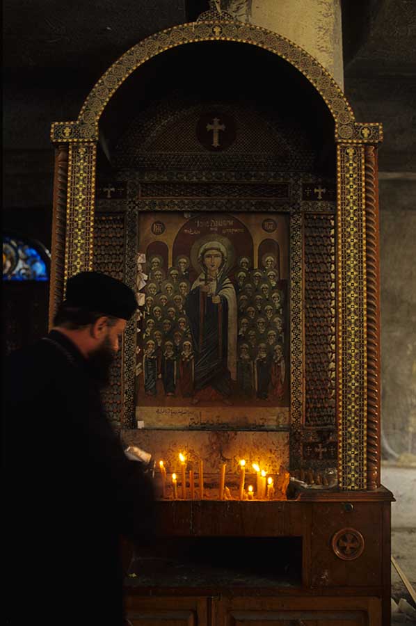 NS_029 April 12, 2017 598 × 900 Dimyana ( Burullus) Photo: Norbert Schiller, a preist lights a candle before the icon of Saint Dimyana near Bilqas.