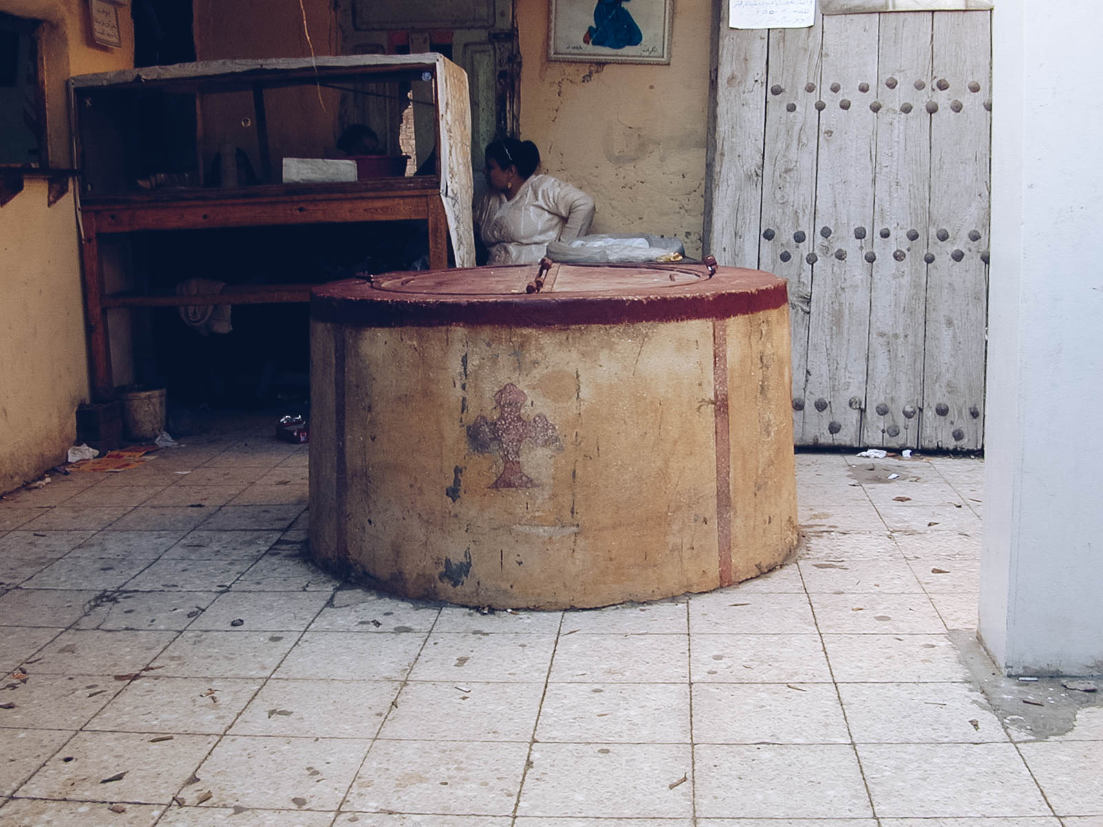DSCN0934 April 12, 2017 1600 × 1200 Samannud Photo: Paul Perry, the well of the Church of the Holy Virgin and St. Apa Nub which was blessed by the Holy Family during their stay of 14 to 17 days in the town of Samannud. The well is covered to protect it from dirt and pollution.
