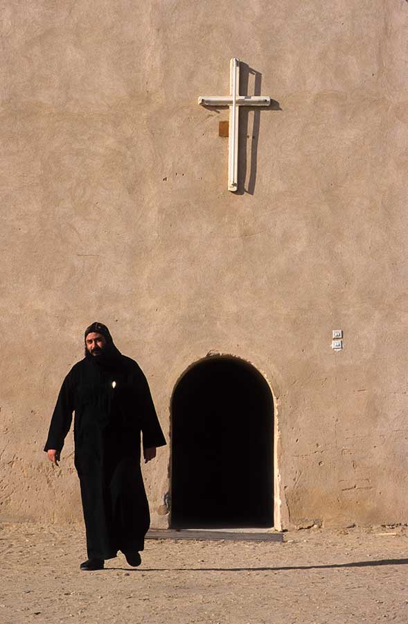 a monk near the old wall of Dayr Anba Bishoi. April 12, 2017 589 × 900 Wadi al-Natrun Photo: Norbert Schiller, a monk near the old wall of Dayr Anba Bishoi.