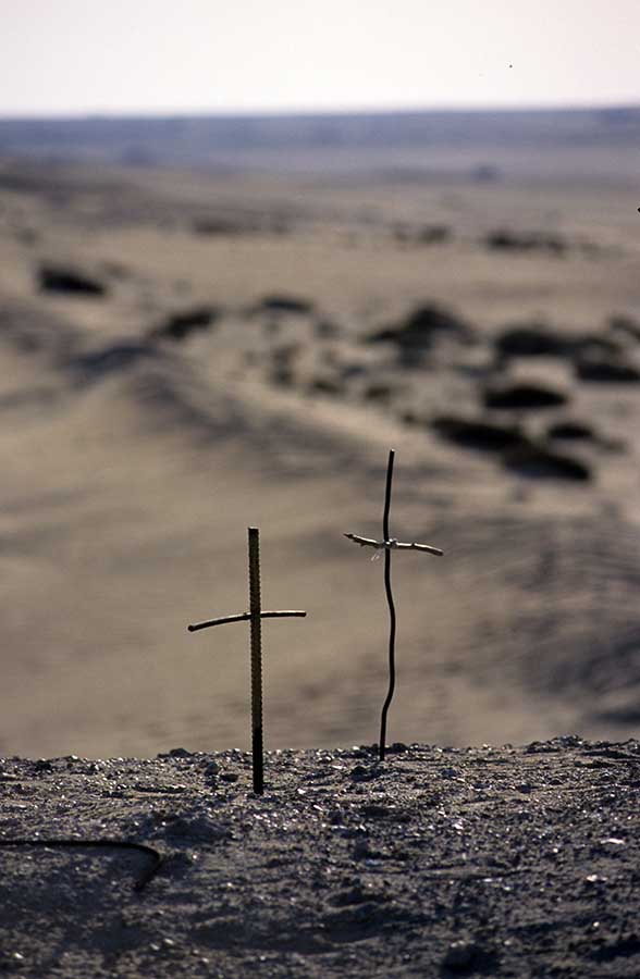 crosses placed in the desert April 12, 2017 588 × 900 Wadi al-Natrun Photo: Norbert Schiller, crosses placed in the desert by pilgrims to Wadi al-Natrun