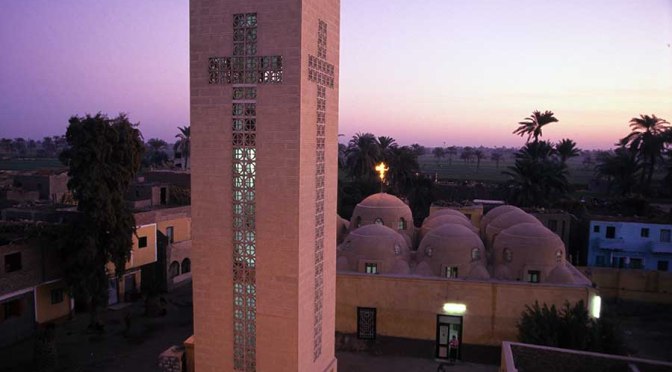 Photo: Norbert Schiller, sunset over the Church of St. George at Ishnin al-Nasara.